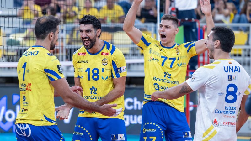 Nico Bruno, Martín Ramos, Dobromir Dimitrov y Unai Larrañaga, de espaldas, en el tercer set del triunfo amarillo contra el Olympiacos griego. CVGUAGUAS.com Espacio promovido por […]